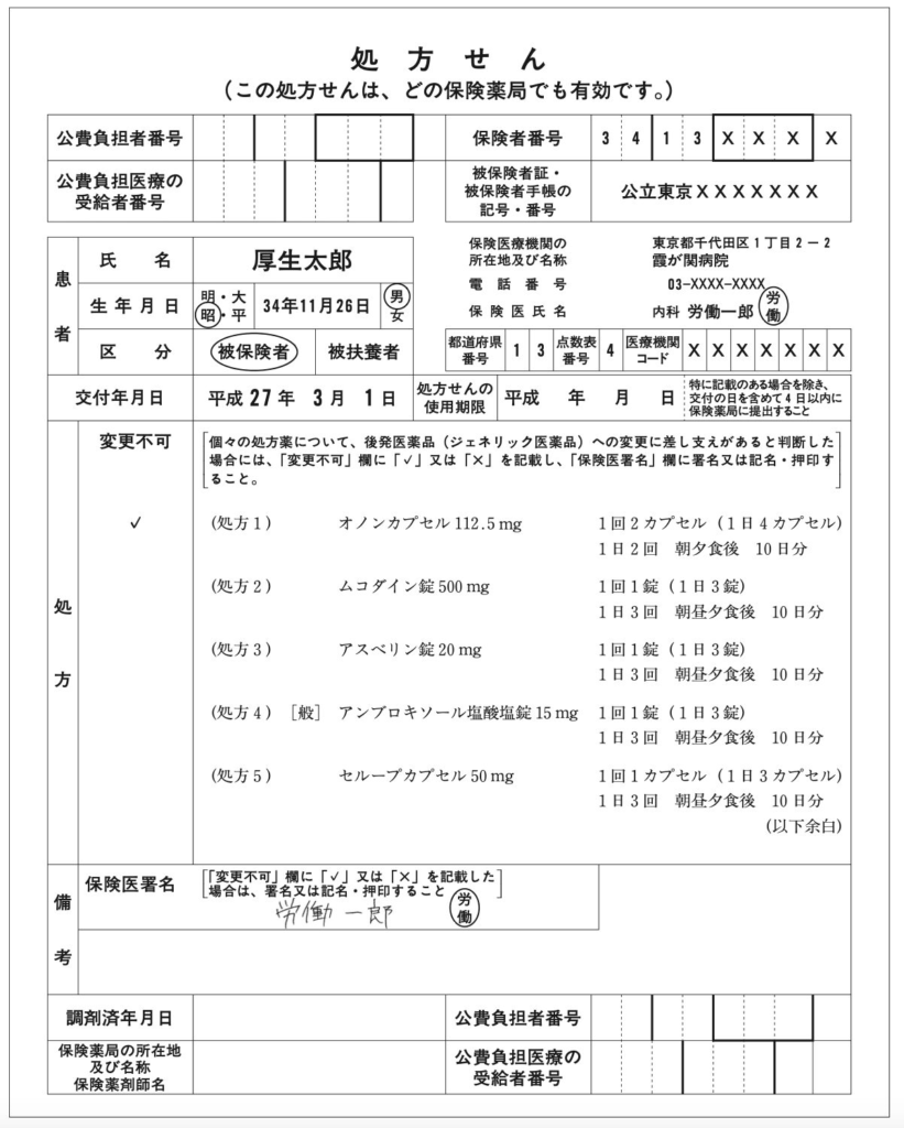 このように処方箋の医薬品の名称の横に変更不可の☑が記載されます。